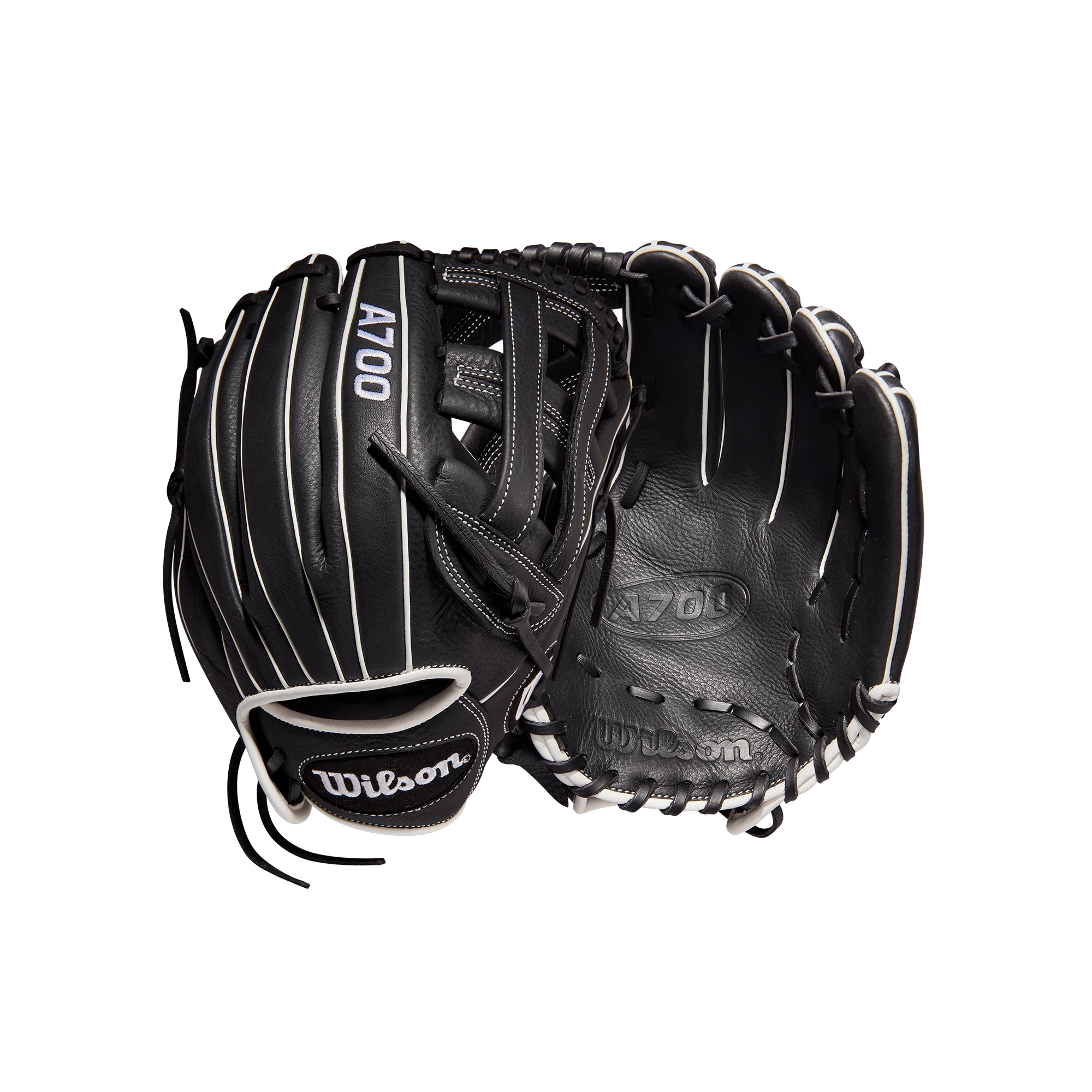 Hone your skills all over the diamond with the sturdy Dual Post Web of the A700® 12” Fastpitch Infield Glove. Black and White Full Grain leather is game ready on day one