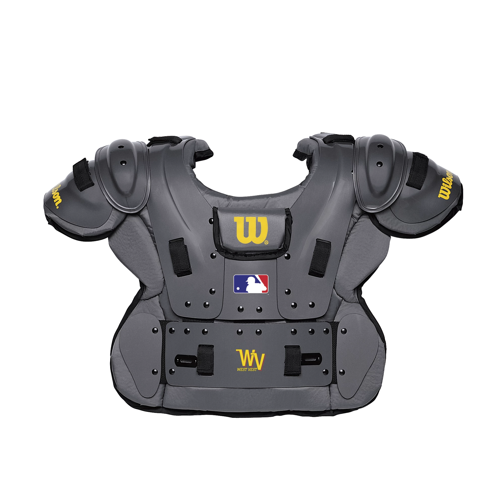 Contoured shoulder plates, extra side protection, a neck pad, and increased sternum protection in the Wilson West Vest Pro Platinum Chest Protector combine for a low profile chest protector with a high level of protection.