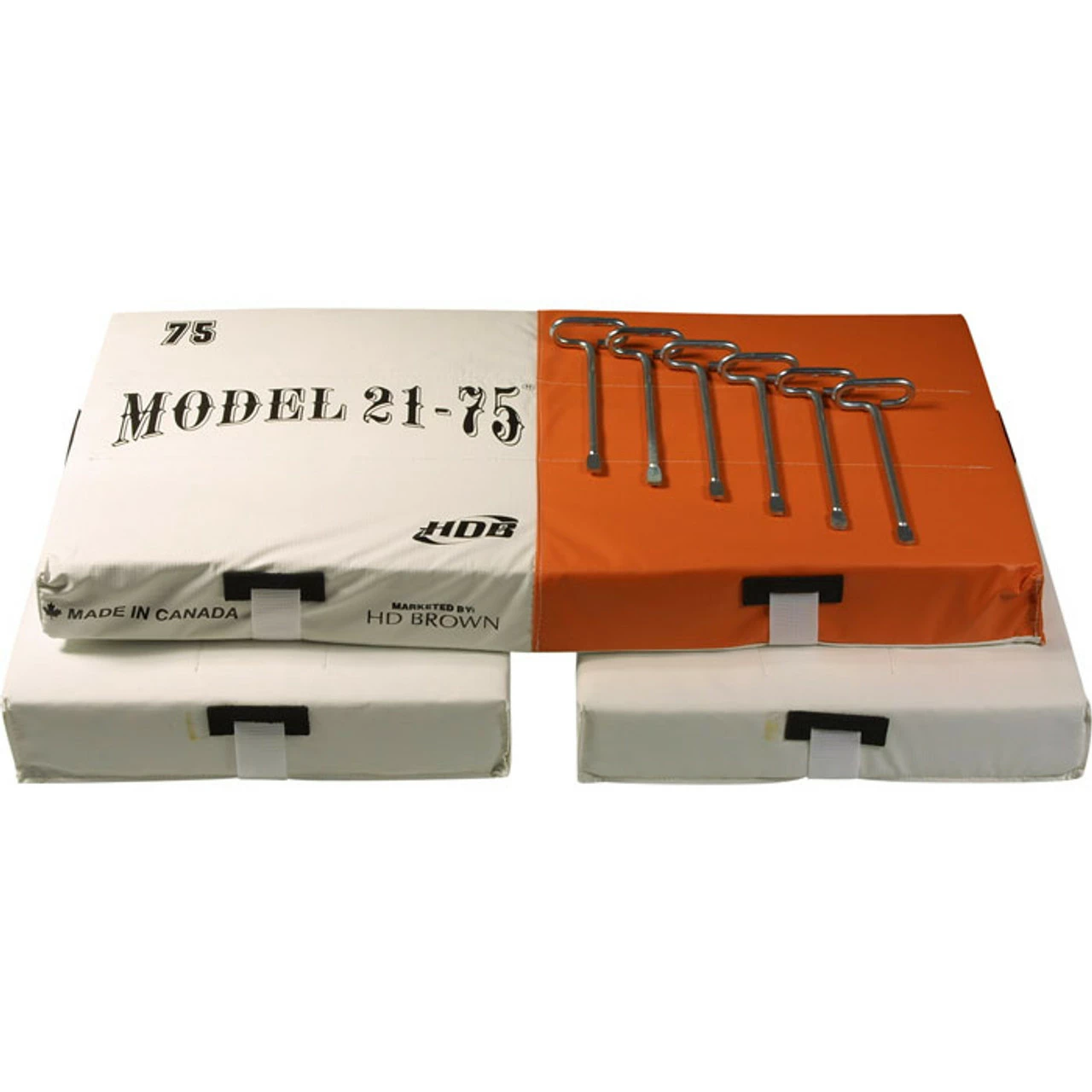 One Leaguer Vinyl Double Safebase.(30″ x 15″ x 3″) Two white vinyl single strap bases.(15″ x 15″ x 3″)
